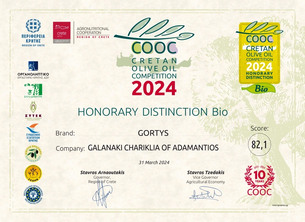 In our first year in the field of olive oil standardization, we won apart from your trust, our first award in the Cretan olive oil competition (one of the most demanding competitions worldwide). We will continue with the same zeal to offer you the highest quality in organic bio olive oil.
