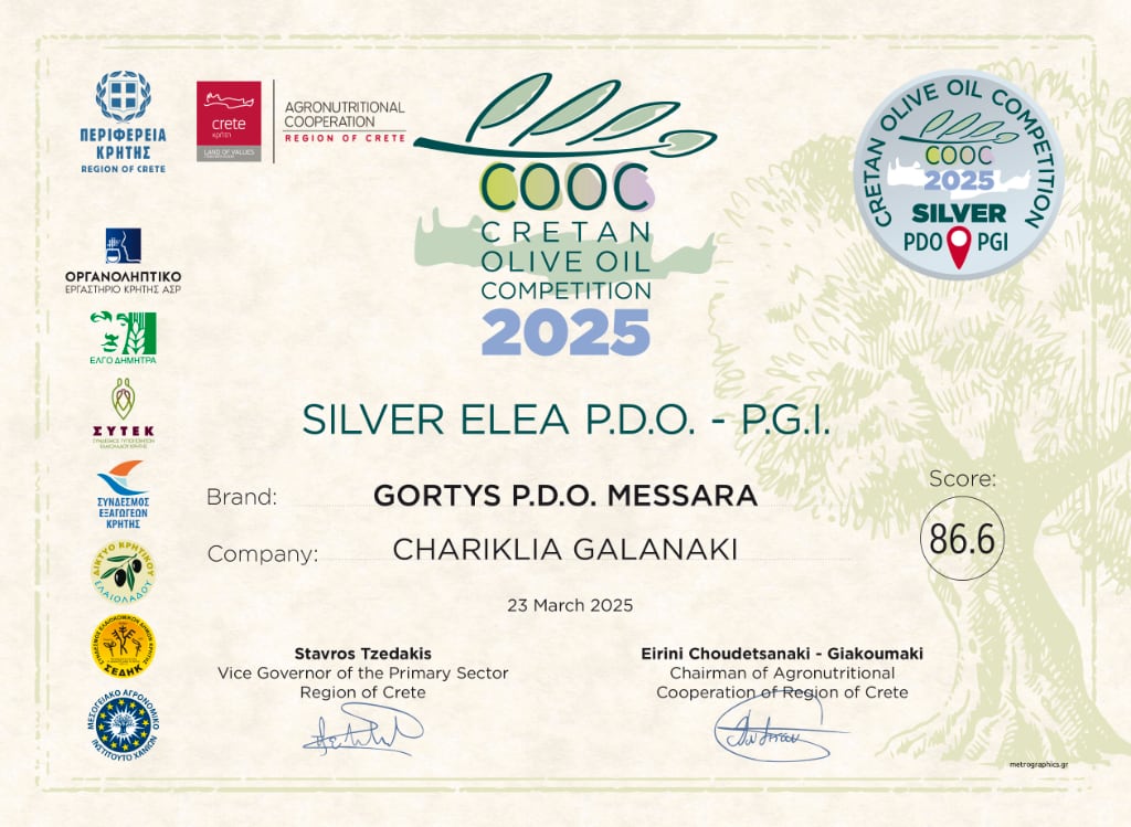 For the second consecutive year, Gortys Bio Extra Virgin Olive Oil has earned another important distinction for its quality at the Pancretan Olive Oil Competition.